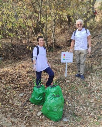 Водени од професорот по физичко образование, проф. Марјан Стојановски, тргнавме од полициската станица, каде што по пешачката патека кон средно Водно, веднаш наидовме на мини депонија. Младите активисти ги „засукаа ракавите“ и експресно ја расчистија. Не можевме да се воздржиме да не го поставиме знакот (види слика) токму на ова место.