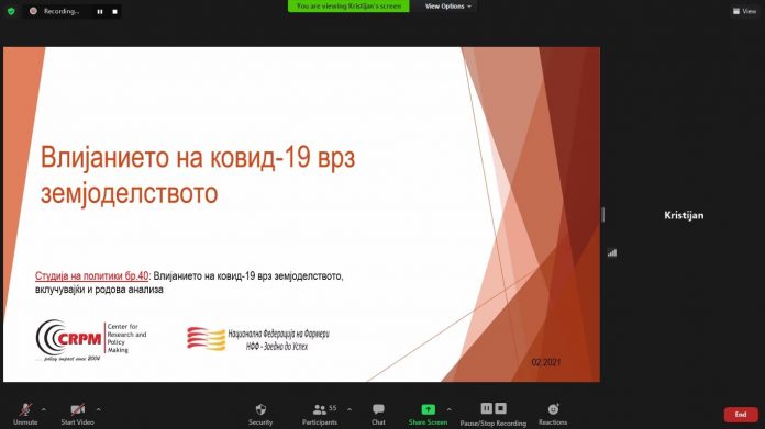 Денес во рамките на нашата соработка заедно со Националната федерација на фармери организиравме ZOOM конференција на која беа претставени наодите содржани во студијата на политики насловена „Влијанието на ковид-19 врз земјоделството, вклучувајќи и родова анализа.“