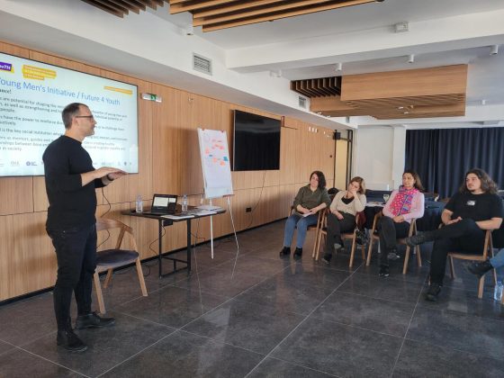Претставници од партнерските организации Youth Can- Младите Можат и Organized Youth Association и членови од нашиот тим ја следат оваа обука која ќе ни овозможи подготовка за следната фаза каде ќе работиме со млади момчиња од средни училишта во двете општини.