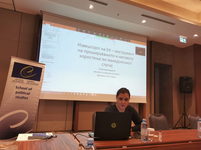 Во среда на 22.12.2021 во х.Хилтон од 18 часот неделно предавање оддржа Симонида Кацарска, директорка на Институт за Европски политики, ЕПИ, доктор по политички науки-меѓународни студиии од Лидс. Темата на предавањето беше: Македонија, ЕУ преговори и извештаите на ЕК во изминатата декада.