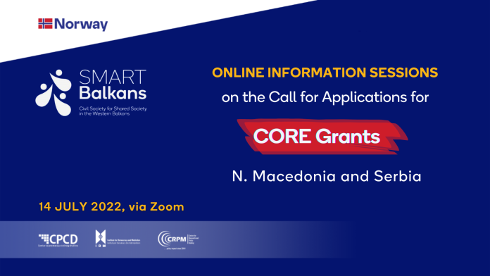 The Center for Research and Policy Making (CRPM) in partnership with Centar za promociju civilnog drustva (CPCD) from BiH, and the Institute for Democracy and Mediation (IDM) from Albania invites the interested CSOs from N. Macedonia and Serbia to express their interest to participate in online information sessions to find out more about the Call for Applications – Core Grants, under the project SMART Balkans Project, funded by the Ministry of Foreign Affairs of the Kingdom of Norway.