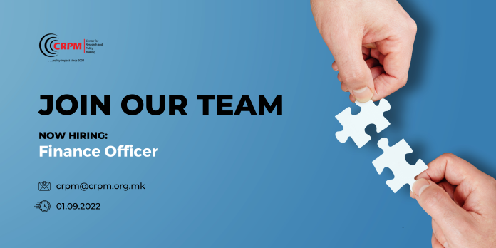 Please send your CV and motivation letter to crpm@crpm.org.mk with the title “Application for CRPM Finance Officer” no later than 01.09.2022.