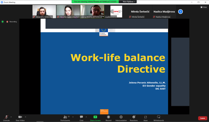 Our expert panelists – Jelena Peranic Attenelle (DG JUST D3), Marija Risteska (Center for Research and Policy Making), Slavica Striković (Ženska Akcija), Alina Andronache (Partnership Center for Development), Amina Dizdar (Sarajevski otvoreni centar), Dita Dobranja (Economic expert), and Jano Puškar (father that used paternity leave in Vojvodina, Serbia) shared their insights and experiences, and we had some great audience participation as well.